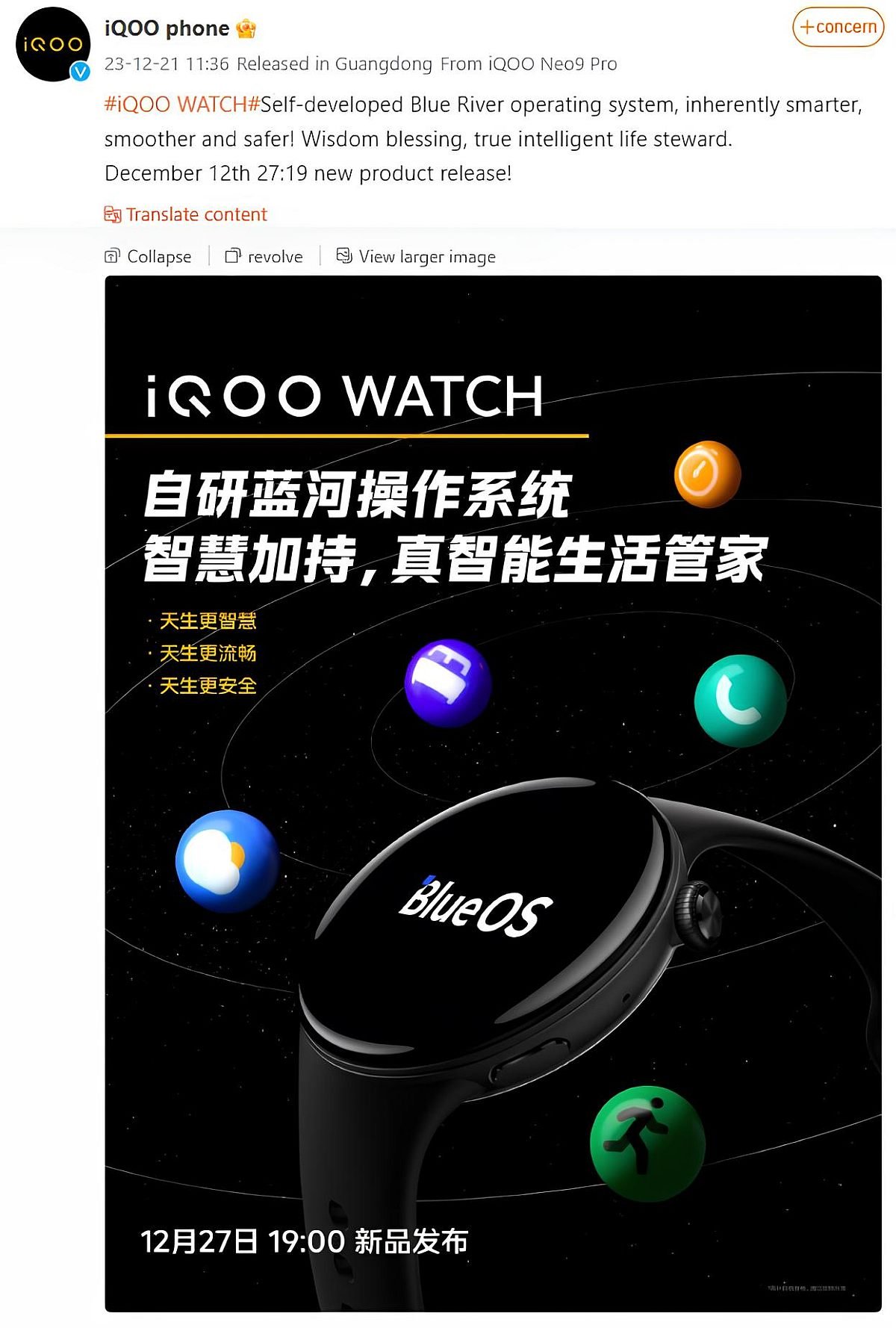 iQoo has already announced that the launch of the iQoo Watch will take place in China on December 27 at 7:00pm local time (4:30pm IST) alongside two of the company’s upcoming smartphones and a truly wireless stereo (TWS) headset.